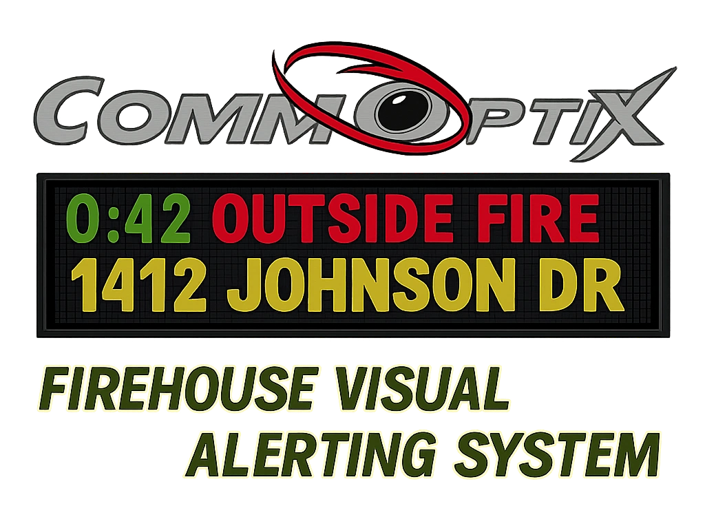 CommOptix has designed a wireless communication technology that connects the Dispatch Center to our web-based application, which then links to the wireless LED signboards via the Cloud. The CommOptix Firehouse Alerting System is often described by our customers as a pre-alert system, delivering critical messages in just 200 milliseconds from the moment they are sent from dispatch.